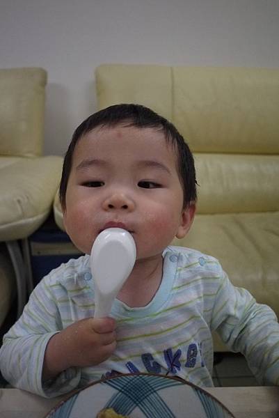 阿鴻的食量並不是特別大, 奶也不是頂愛喝, 飯也是看心情吃 .... 因此只要他一開口要吃.想吃..... 我就會特別高興, 當媽的就是這樣, 怕吃不飽 長不好!!