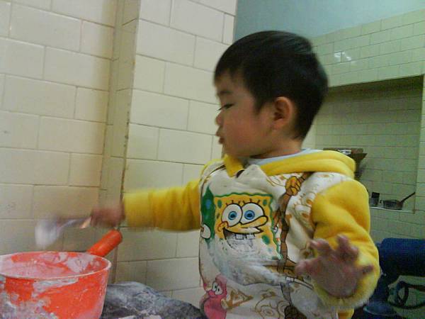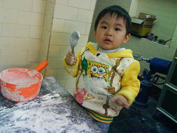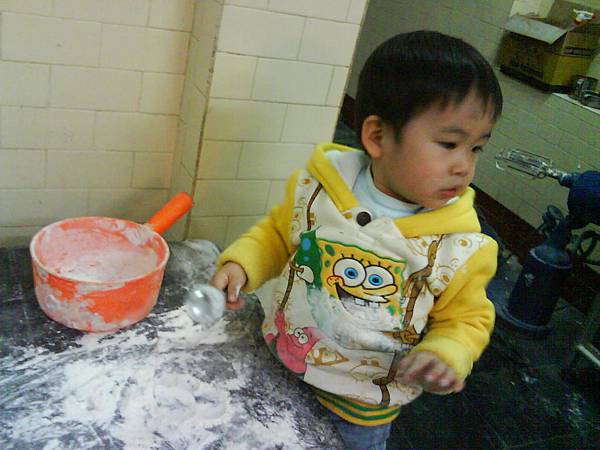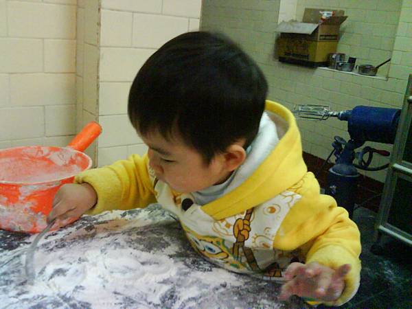 所以...過年去姑姑家麵包店玩麵粉應該是件令人興奮的事情!!....因為姑婆不會罵他...