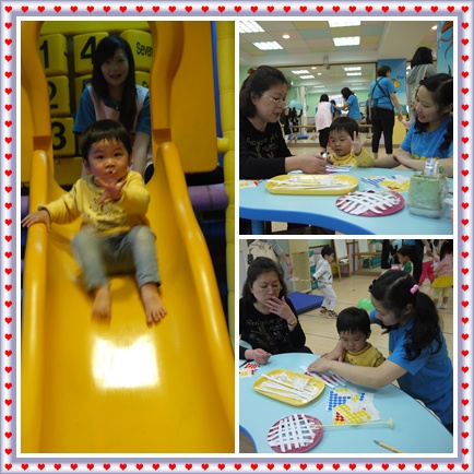 2012.4.14這應該是第2次觀摩會, 每次觀摩會其實就是招生說明, 重點不外乎就是"早點報名早點有優惠" , 我通常都在旁邊聽其他父母的問與老師的答, 聽聽大家在乎的是哪些點, 老師們又是怎麼回答... 這次大概快11:00才抵達所以快快做完手上的勞作, 讓小人玩一下就回家去了!!